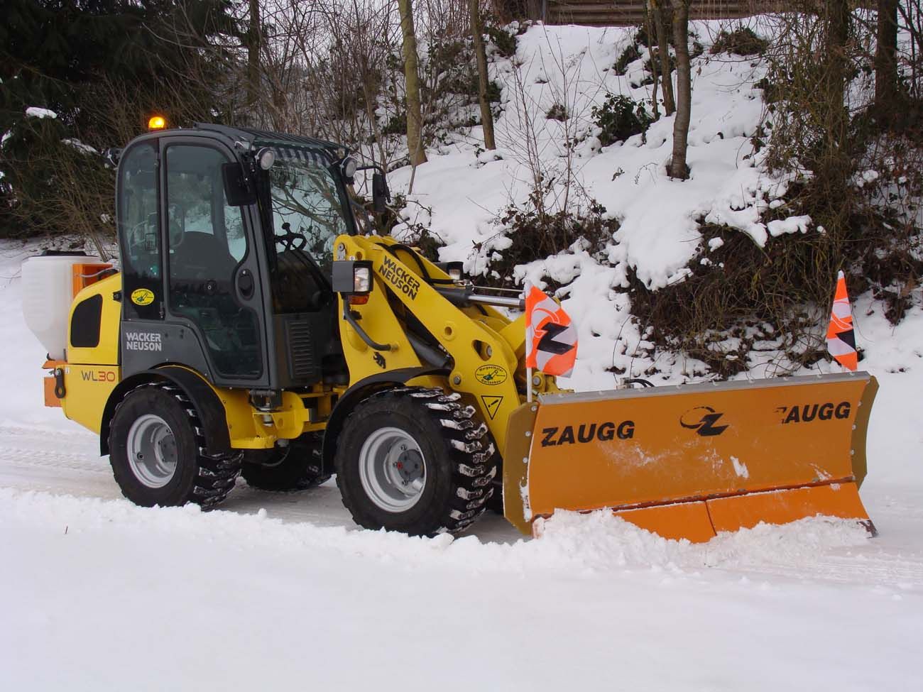 - Entfernen von Schneewalmen und Schneehaufen mit dem Pneulader